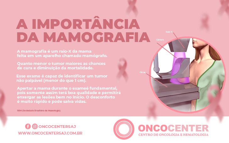 Isso acontece não apenas porque a detecção e diagnóstico precoce aumentam as chances de cura, em até 95%, mas também porque a realização do tratamento clínico e cirúrgico na fase inicial da doença permite uma abordagem menos agressiva ou mutiladora. Ou seja, realizar mamografia é dar chance à cura, e dar chance à vida.